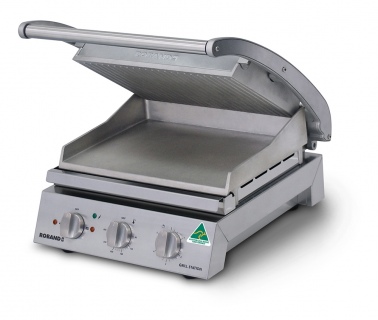 Roband Grill Station GSA815R with Ribbed Top Plate & Smooth Bottom Plate 8 Slice Capacity