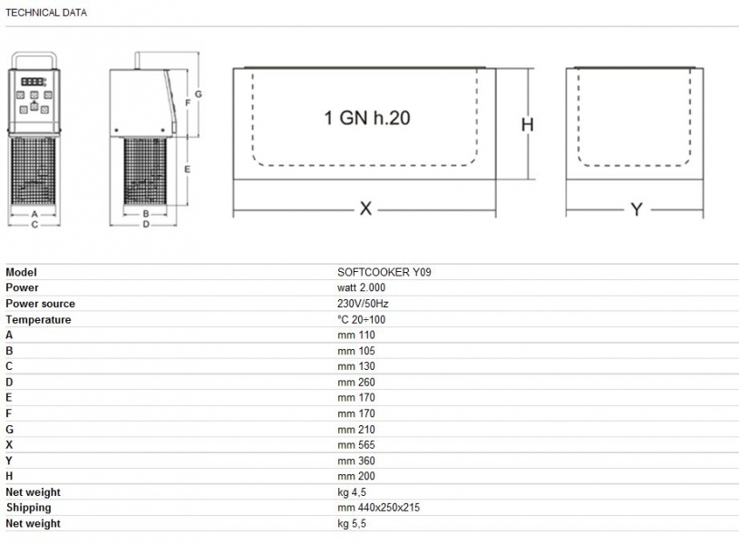 - 1/1 GN, 20 cm high, 27 lt tray is made of AISI 304 s/steel