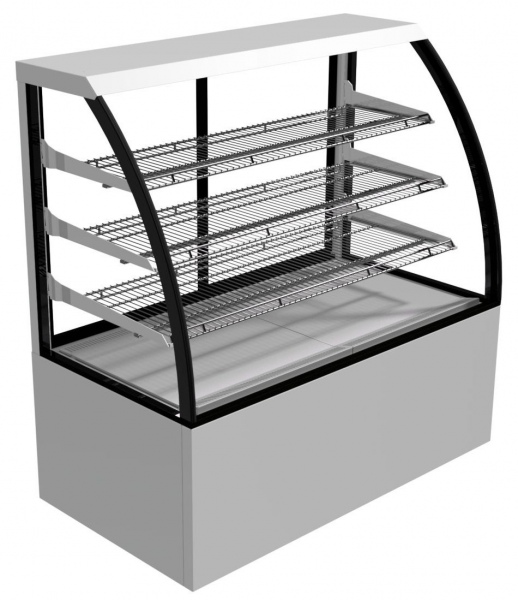 The curved glass front of the elegant Lincoln cabinet gives visual impact and provides an unobstructed view of the displayed food.
