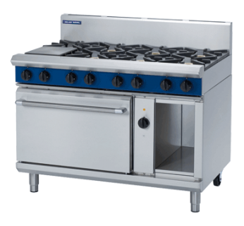 Blue Seal G58D 8 Burner Gas Range on Gas Convection Oven