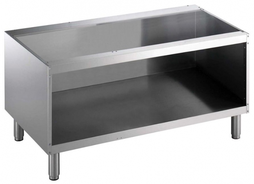 - Open base compartment for storage of pots, pans, sheet pans, etc.