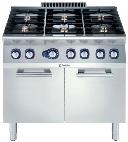- The six high efficiency flower flame burners allow the flame to adapt to different size pans.