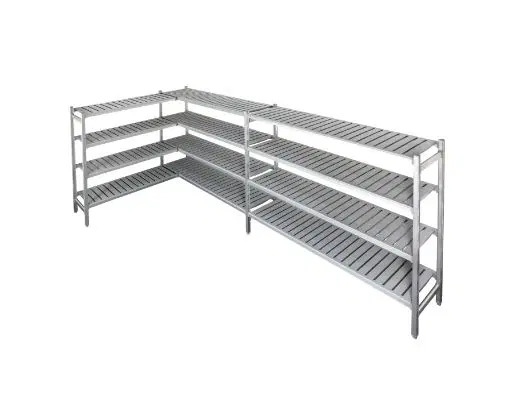 Made with super-strong aluminium posts and high-density food-grade plastic. Shelves pop-out for easy cleaning.